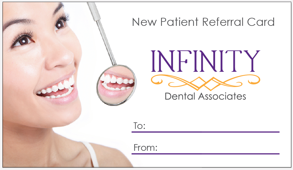 Infinity Dental Associates Corporate Images, Logos Client: Infinity Dental Associates Dr. Gina Marcus Project: Corporative Image. Miami FL. May, 2013 Business Card Front and Back: Referral Card for New Patients: P.O.P Material Mouse Pad and Coffee Mug: Flyers: Skills Posted on May 2, 2013 ← Fractals Fotografia Infinity Dental Associates Website →
